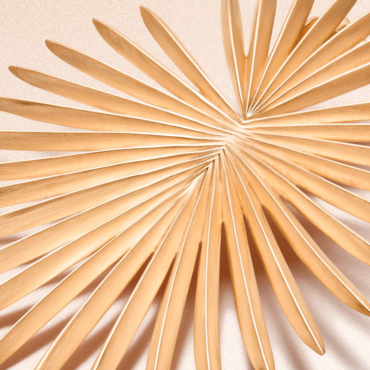 Palma pendant in brushed and polished 18K rose gold with an adjustable length chain. Designed as a stylised, fan-shaped palm leaf with lifelike fronds radiating from the centre.